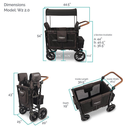 Wonderfold W2 Luxe Multifunctional Double (2 seater) Stroller Wagon - Volcanic Black