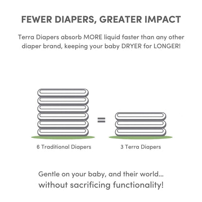 When your little one enters the world, Terra diapers are right there to protect their soft delicate skin with gentle plant-based materials.