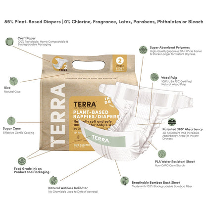 TERRA Plant-Based Diapers - Size 2/Infant (22 Pack)