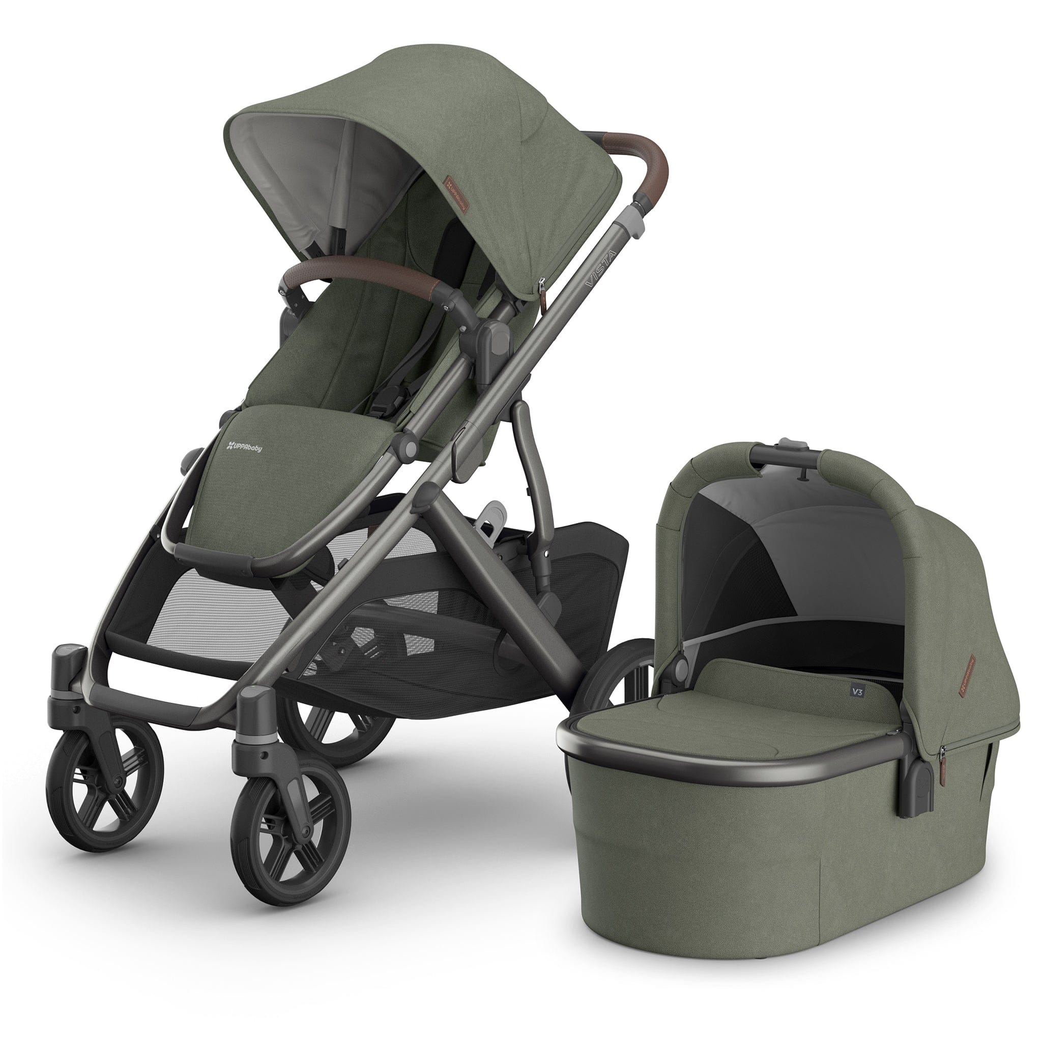 The UPPAbaby Vista V3 stroller is intuitively designed to “grow” with your family! It starts as a single stroller but can easily transform to accommodate up to three children with added accessories and adapters — becoming the ultimate in portability and convenience!