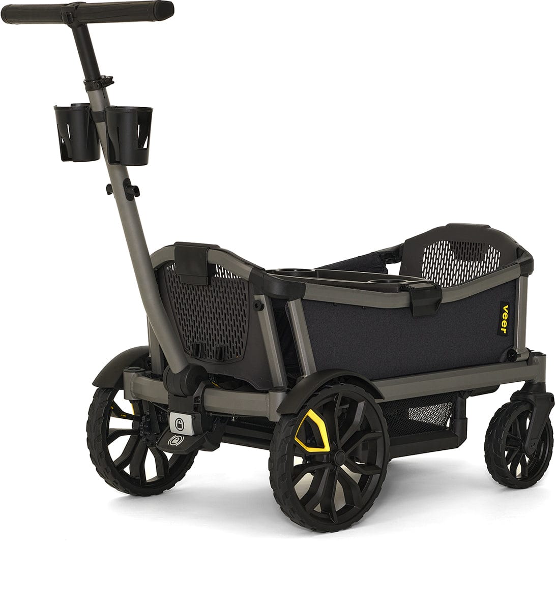 Cruiser City gives your family the fun and all-terrain versatility of a Cruiser but offers the push steering of a traditional stroller. Cruiser City is perfect for families that love to push on sidewalks, paths and through local attractions with seating for 2. Cruiser City features swivel wheels furthest from the handle, which enable it to be steered like a traditional stroller when pushing on smooth terrain. The handlebar can also drop into wagon mode for pulling over uneven terrain.
