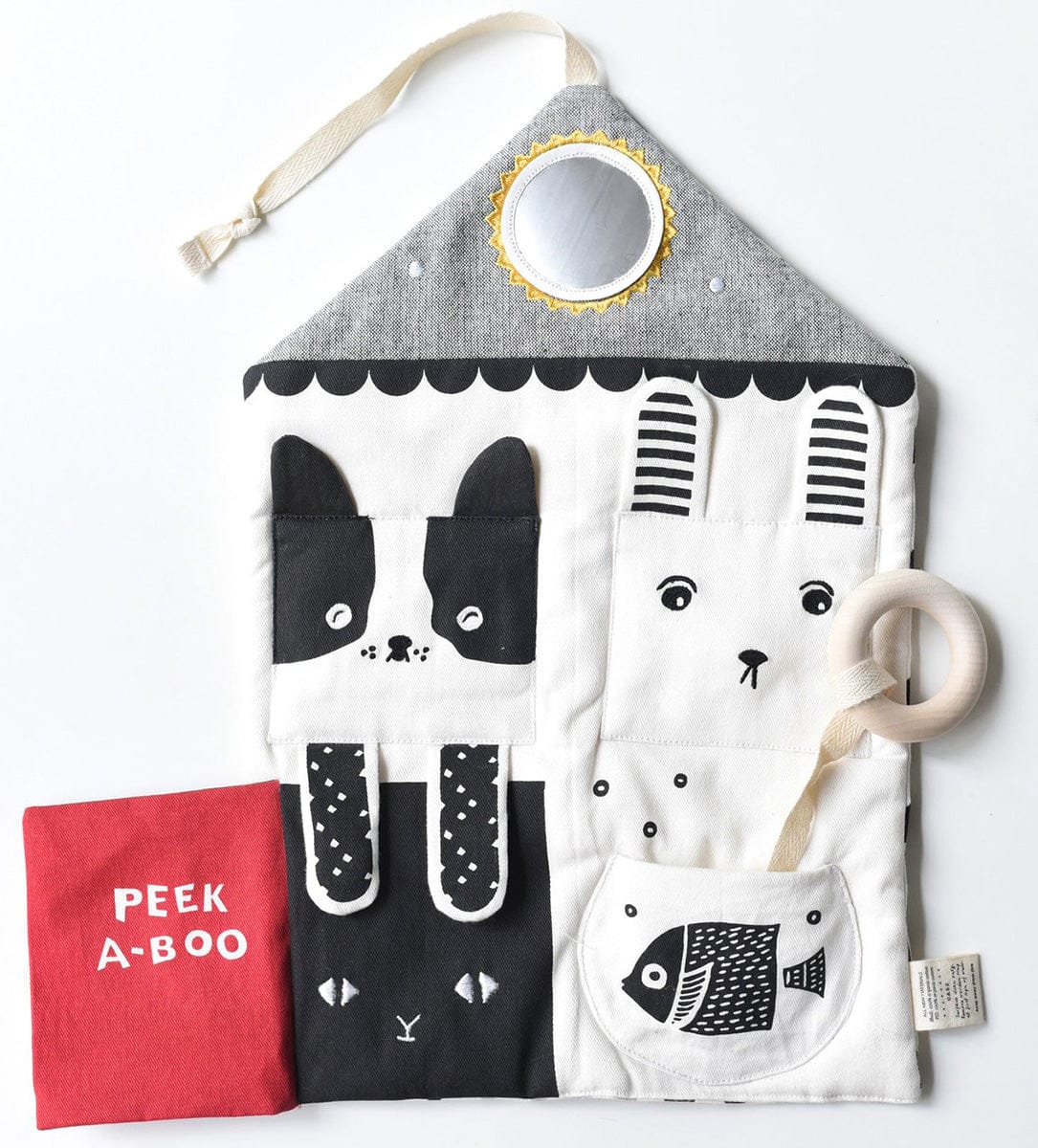 This modern activity pad keeps baby stimulated with its high contrast graphics and sensory features such as crinkle flaps, sounds, embroidery and pockets with hidden treasures.