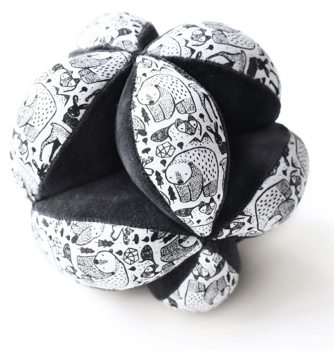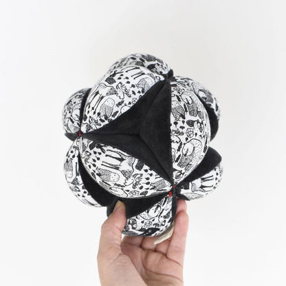 Our sensory Clutch Ball toy is designed to delight your baby's developing senses. Signature high-contrast hand painted graphics grab baby's attention visually, while varied textures provide tactile stimulation. Its beautiful organic shell fabrics and Nordic pattern make it the perfect keepsake gift.