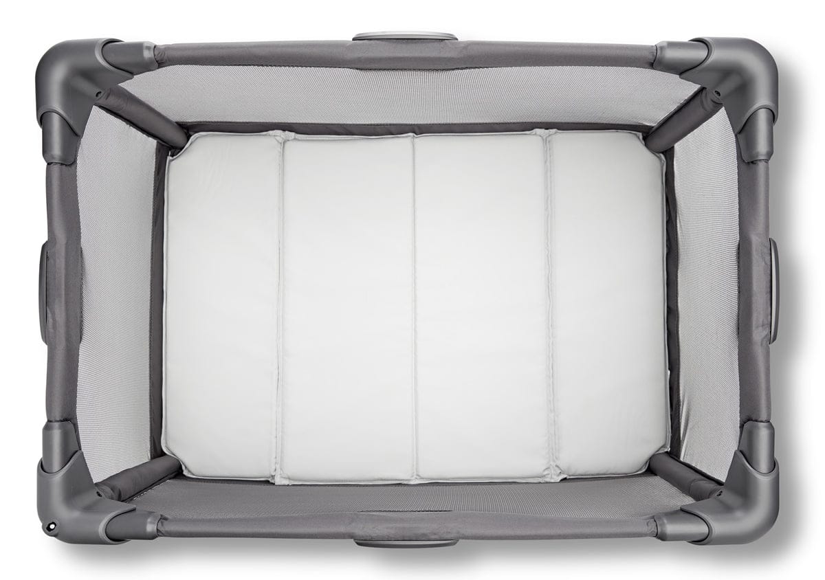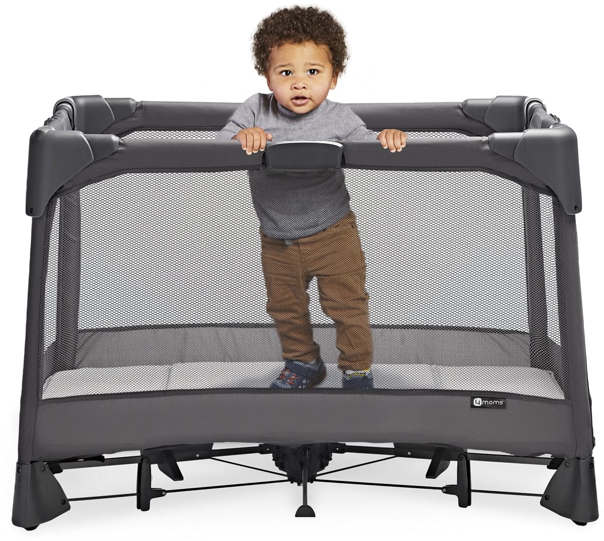 The 4moms breeze GO playard is the epitome of simplicity and convenience. With the breeze GO, opening and closing it is a breeze itself. Just a simple push down on the center hub easily opens it up, while pulling the center hub up seamlessly closes it. No more puzzling over tricky assembly or wrestling with manual latches. The automatic latches make the process smooth and hassle-free.