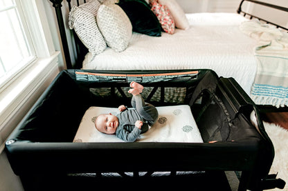 Because the Breeze Plus portable playard with bassinet and changing table consolidates much of your baby’s essential care into one portable place, it will become the one piece of baby gear you can’t live without. The bassinet offers a comfortable spot where baby can rest. Use the convenient flip changer for quick diapering and clothing changes. As your baby grows and is on the move, simply take out the bassinet from the playard to provide a safe space for relaxing and playing. The bassinet can be enjoyed from birth to 18 pounds, the flip changer up to 25 pounds, and the durable playard until 30 pounds. When not in use, conveniently tuck it away in the included travel bag.