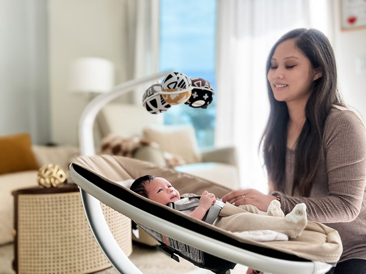 The MamaRoo® Multi-Motion Baby Swing® is the only baby swing that moves like you do. Inspired by you, our motions mimic parents’ natural rhythms and movements to become the most familiar space to safely put your baby down when they can’t be in your arms.