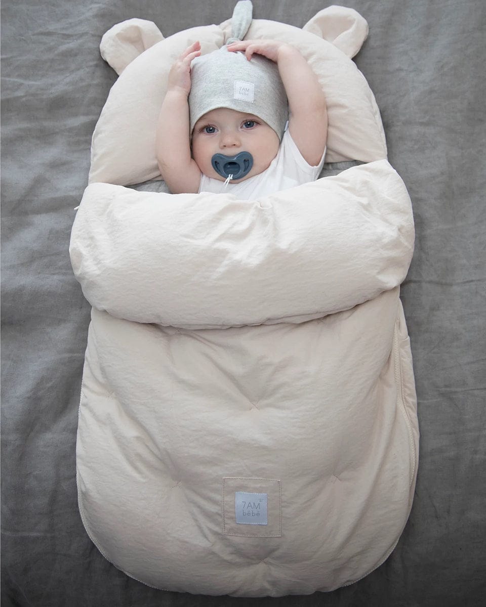 The BébéPOD Airy is the perfect infant bunting for milder temperatures as it features a 100% breathable cotton lining and soft airy materials. Adapt the BébéPOD to your bassinet, car seat or stroller as you see fit. This duvet-like sac has a detachable cover that turns into a single-panel blanket on warmer days where the back is not a necessity. When it’s crisp outside and the family is ready for a stroll, the BébéPOD Airy will cradle baby to sleep in no time.