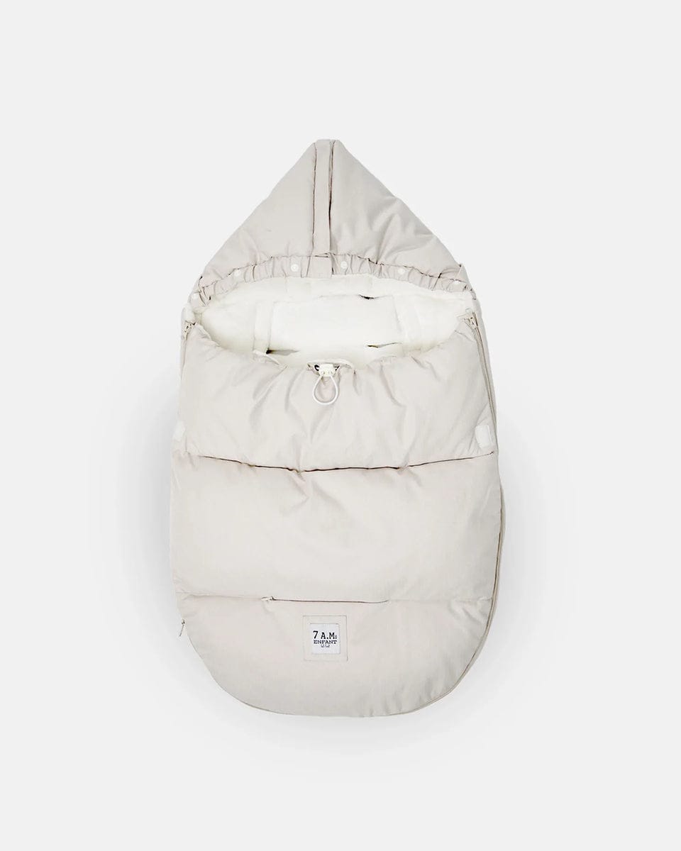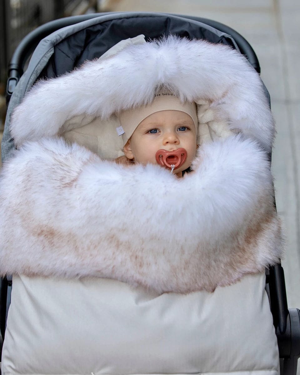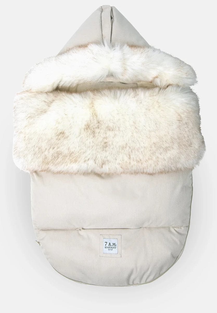 7 A.M. Enfant Plushpod Footmuff - Tundra Heather Beige / White Faux Fur (0-18m)