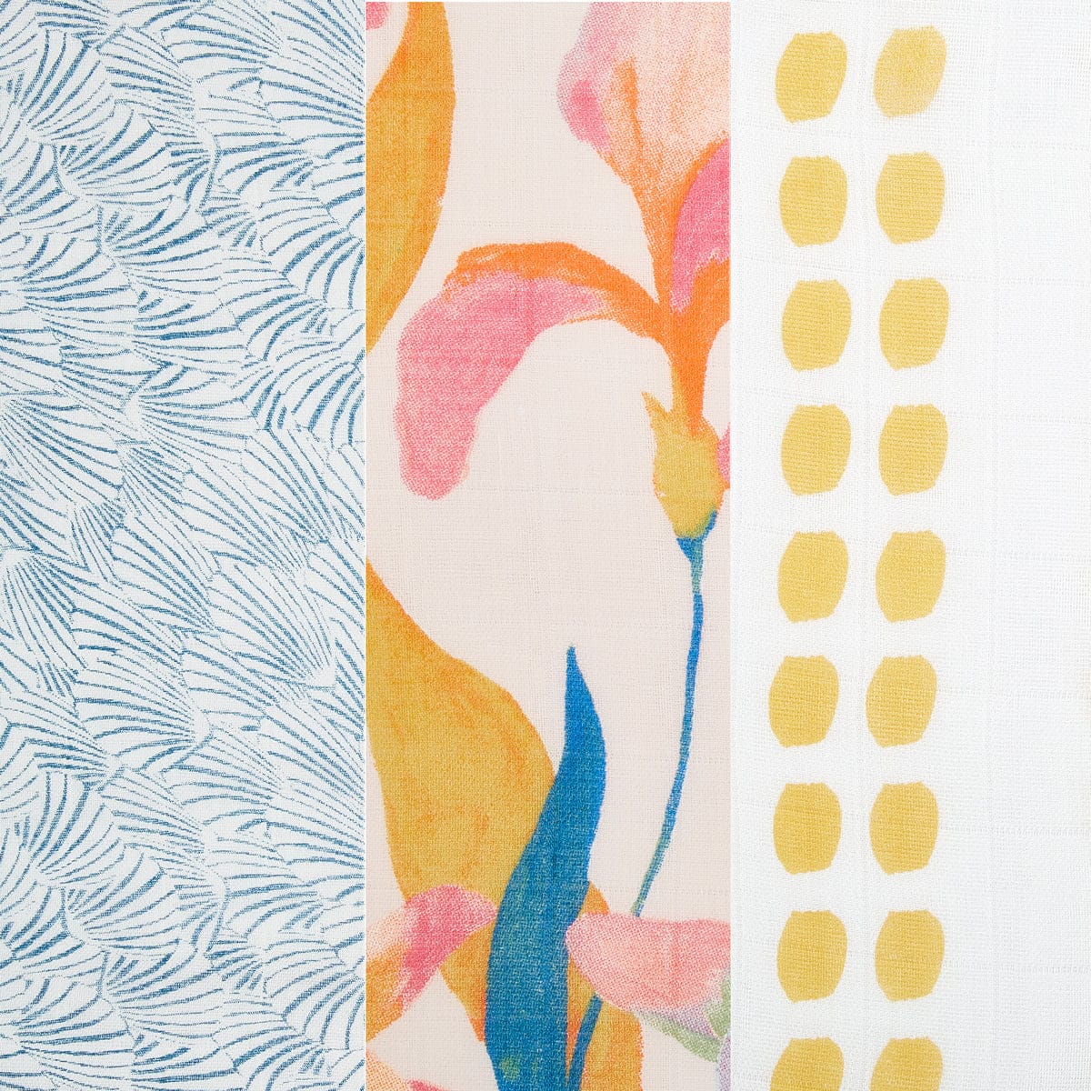 - Three 47" x 47" muslin swaddles