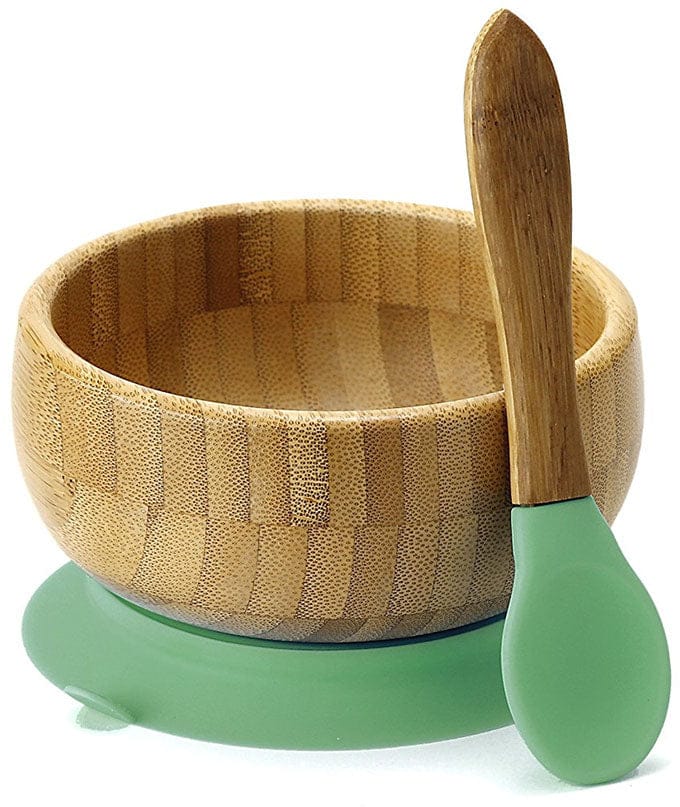 Avanchy Bamboo Stay Put Suction Baby Bowl + Spoon - Green