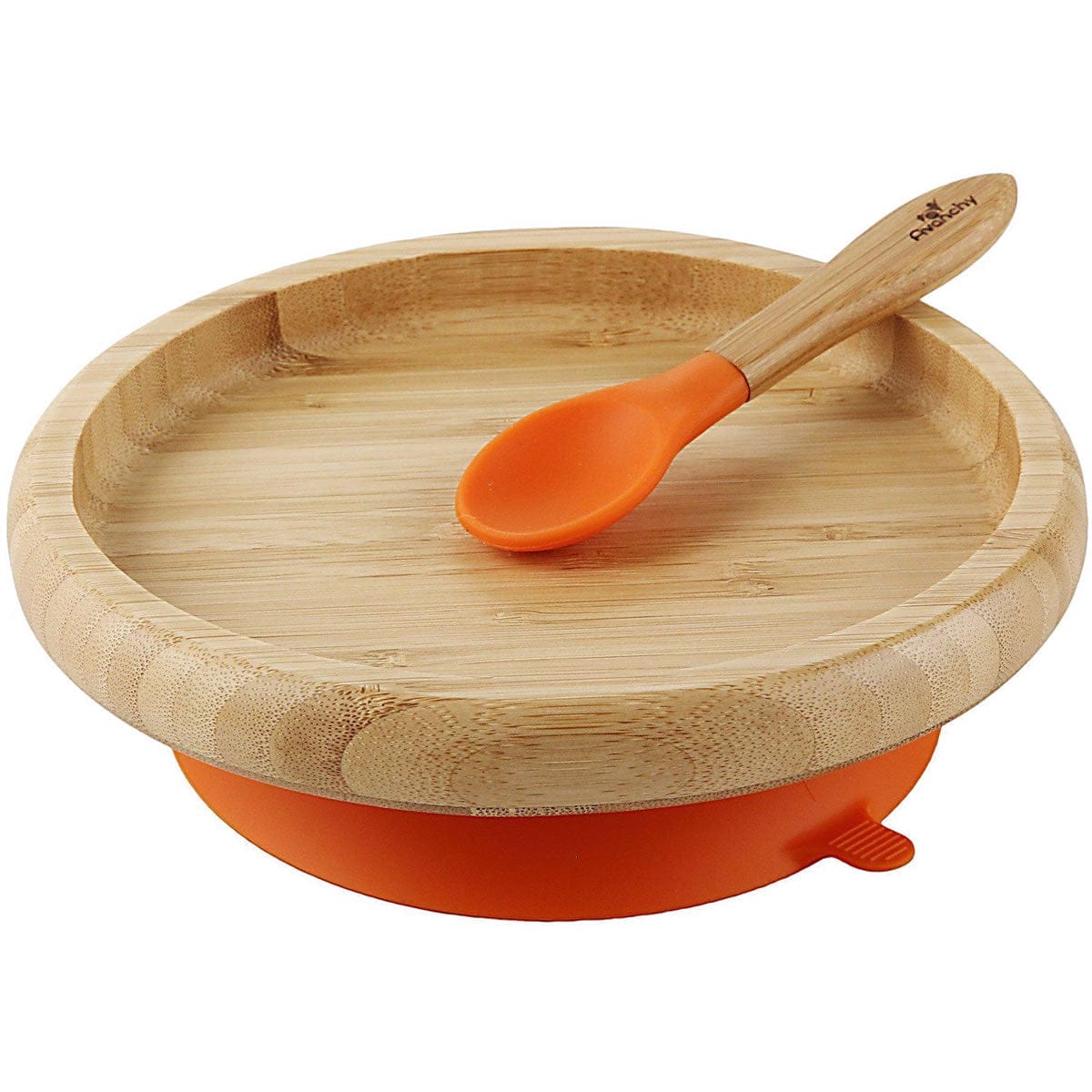 Avanchy Bamboo Suction Classic Plate + Spoon - Orange