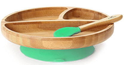 Avanchy Bamboo Suction Toddler Divided Plate + Spoon - Green