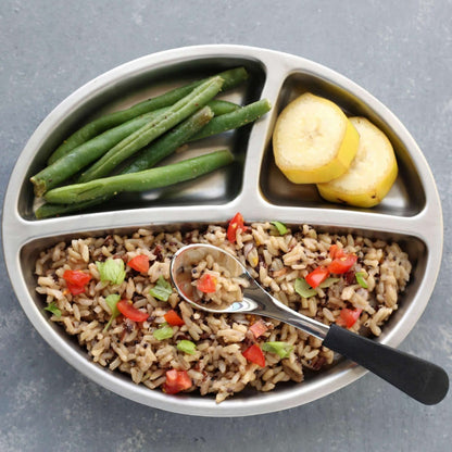 - One (1) double-walled stainless-steel toddler plate with no-slip silicone ring