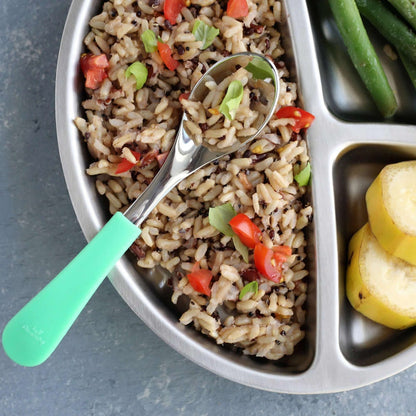 This sectioned toddler plate features 3 compartments that hold full-size portions. It's perfect for creating a balanced meal for an older child or starting baby-led weaning (BLW).