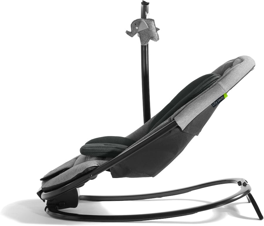The Baby Jogger City Sway Rocker doubles as a bouncer, to soothe and play at home or away. By engaging the kickstand, you can easily transition from rocker to bouncer mode to keep baby content and entertained. City Sway folds flat and can be securely stored or protected during transit with the included storage bag. The lightweight rocker weighs only 9 lb, making it easy to move around the home or take on the go. Featuring a 3-position recline, adjustable calf support, and 2-speed vibration, the City Sway gives you plenty of options to help keep baby calm and comfortable. The wipeable, machine-washable seat cover means a hassle-free cleanup and a plush infant insert keeps baby cool with OptiVent™ fabrics. Plus, the removable toy bar including two premium fabric toys will help keep baby engaged with a rattle and crinkle paper to excite and delight.