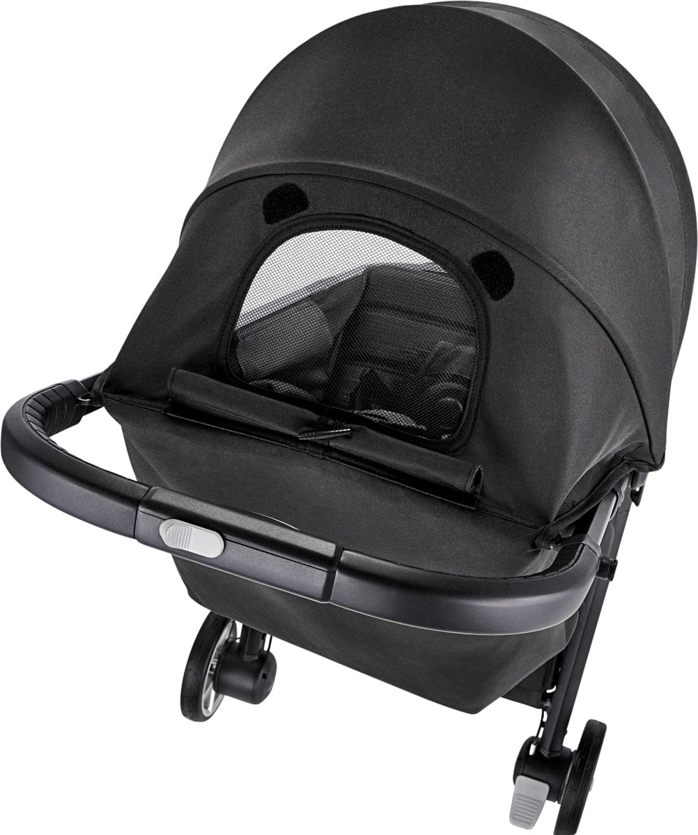 • Canopy with a View: Keep baby shaded with the UV 50+ canopy with extension panel, while the peekaboo window lets you keep an eye on baby as you stroll.
