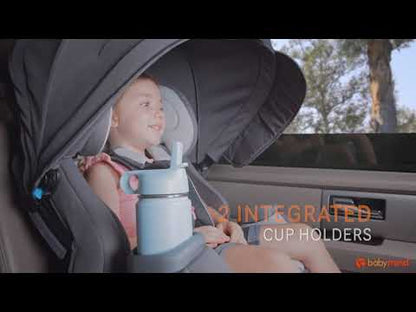- Advanced Ease of Use: No-Twist Harness Indicator for easy, no fuss safety for baby. Two integrated cupholders also offers your child easy accessibility to their favorite drink while on the go!
