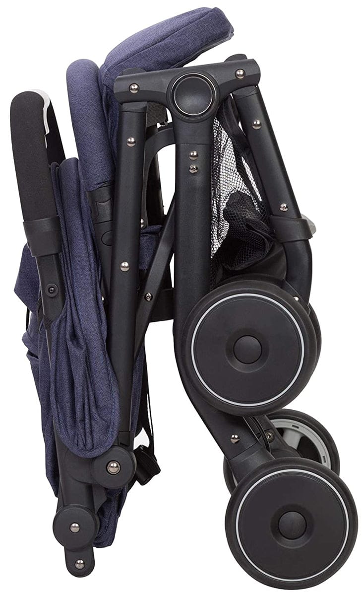 The Jetaway Plus folds compact and fits in the included tote bag for easy transport. It accommodates children up to 45 pounds.