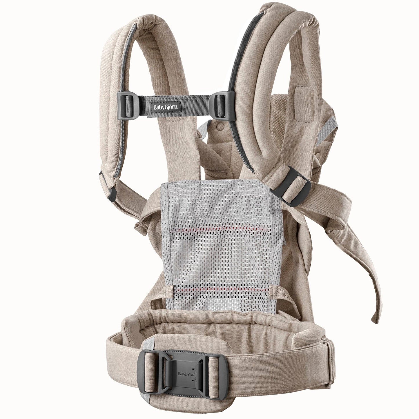 Because our unique 3D mesh is a technical material that is both super soft, flexible and sturdy. It softly hugs your baby and provides proper support for their back, neck and hips. Baby Carrier Harmony is also our coolest baby carrier; because the mesh lets a lot of air through, it offers cool and comfy babywearing even when the temperatures climb.