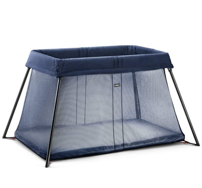 The sides of the travel cot are made of an airy and soft mesh fabric that the baby can breathe through, even if the baby’s face is very close to the side. The see-through mesh lets you keep an eye on your baby and lets your baby see out from inside.