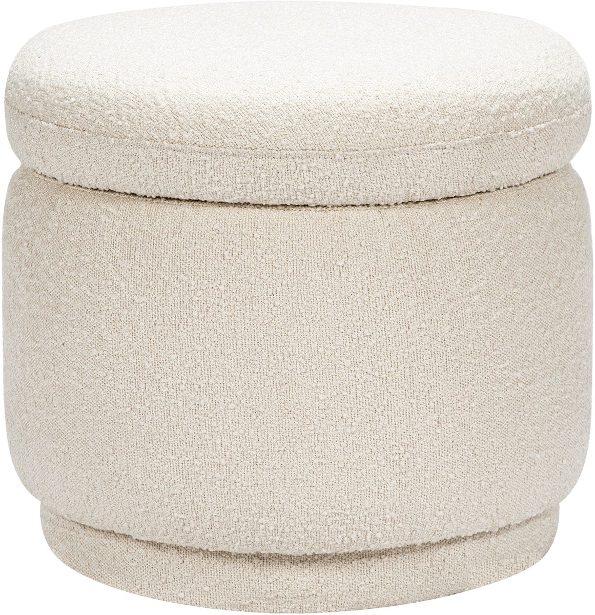 The Enoki Storage Ottoman is as functional as it is stylish, with its round, stacked look and ample storage for all of your baby's extra sheets and blankets. Upholstered by hand in our texture-rich boucle fabric, this trendy ottoman can be paired with any seating to create a statement piece in your nursery or home.