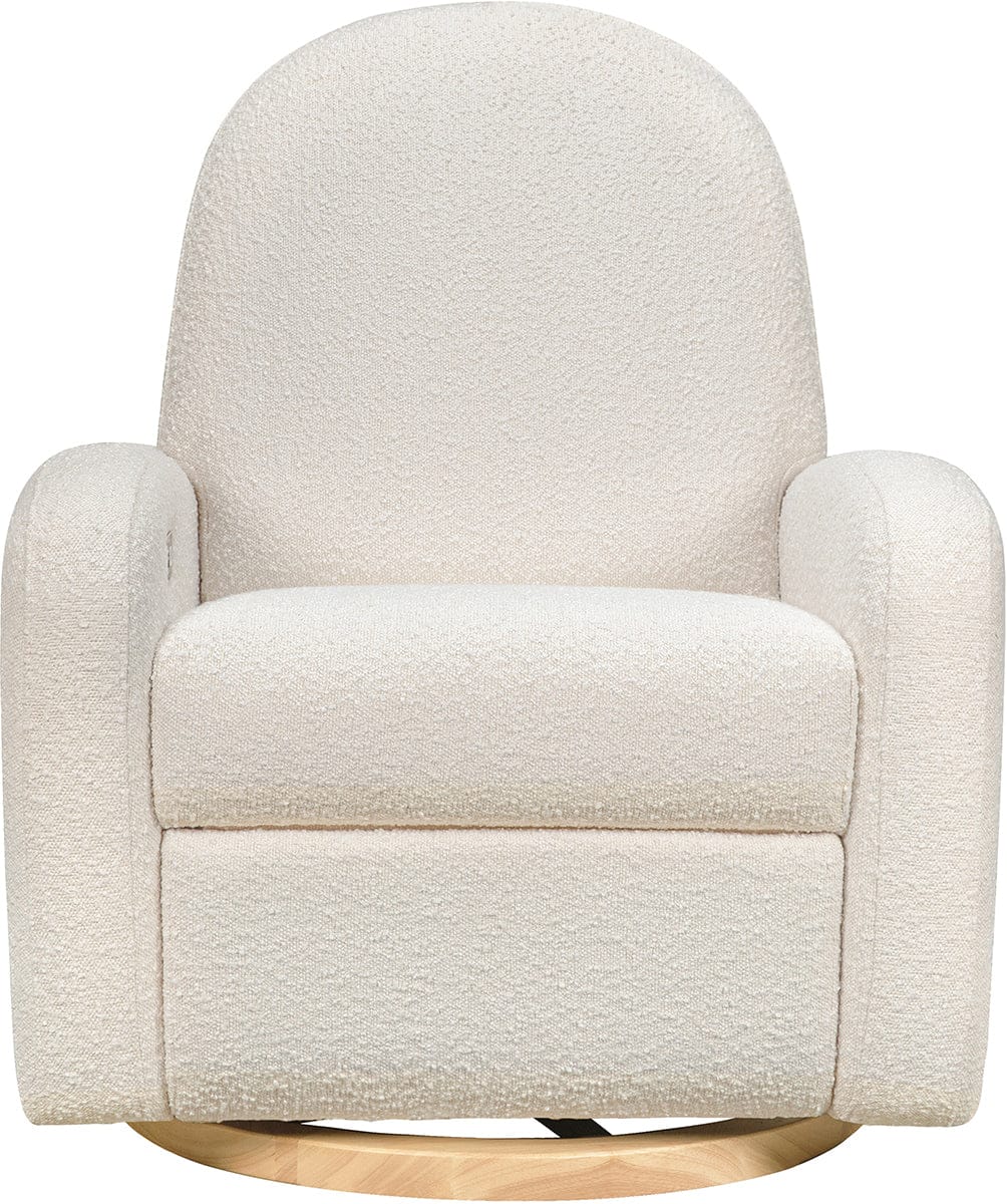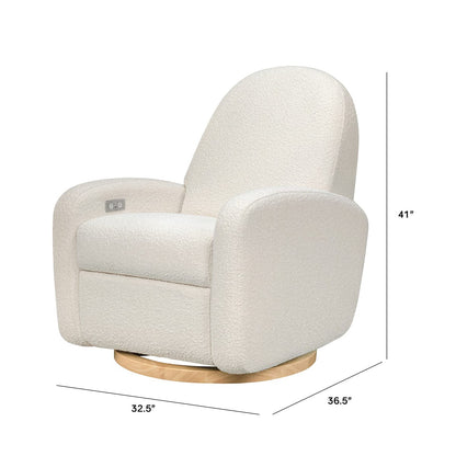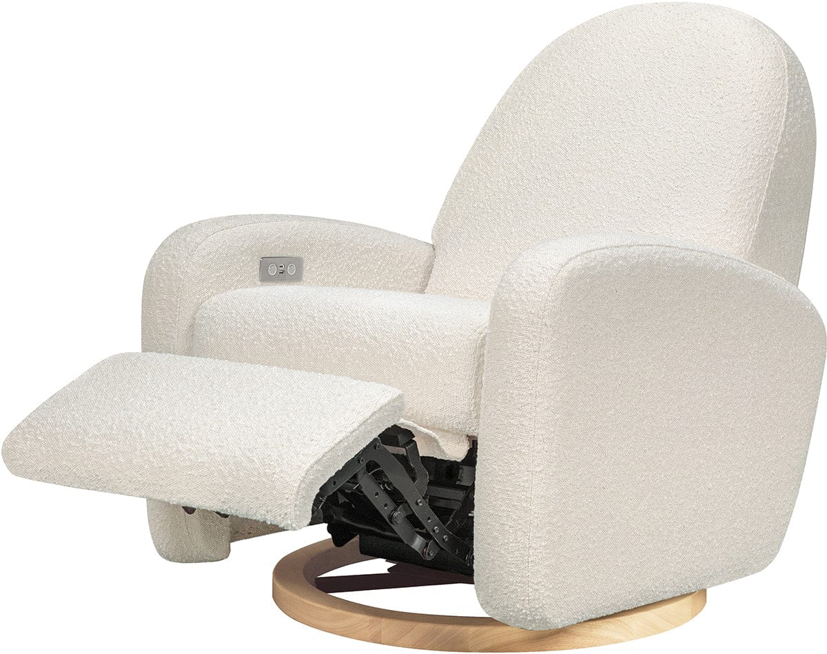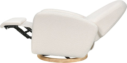Babyletto Nami Electronic Swivel Glider Recliner w/ USB - Ivory Boucle w/ Light Wood Base