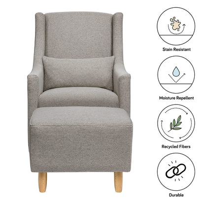 Whether you want a stylish statement piece for your nursery or comfy, practical seating for the home, the Toco Swivel Glider and Ottoman set has you covered! It's the smart choice with a modern wingback design, smooth gliding, 360-degree swivel motion, and an included ottoman. It's a stylish but also more sustainable choice, upholstered by hand in our eco-performance fabric, that is stain resistant, water repellent, and made with at least 30% recycled fibers.