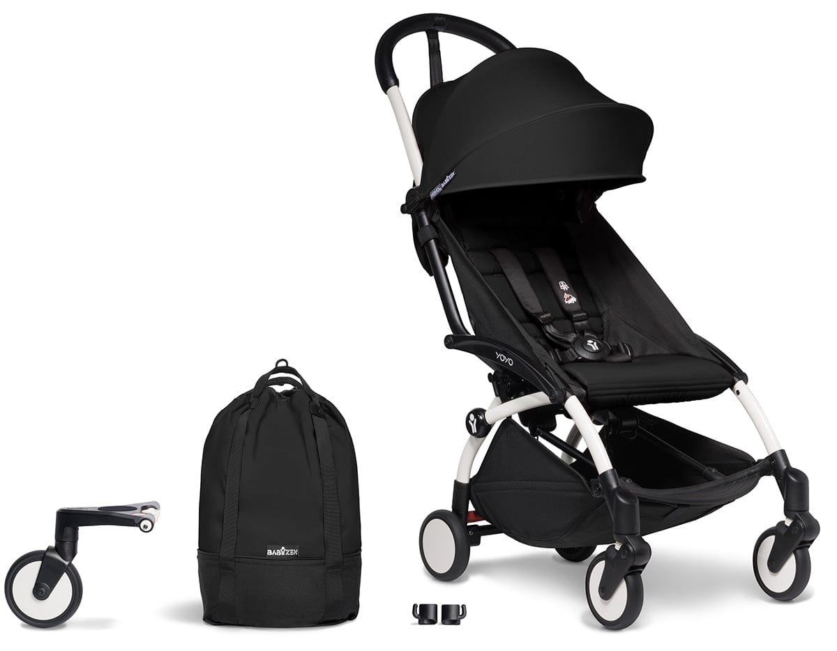 Babyzen YOYO2 Ultra Compact Complete 6+ Stroller & Rolling Bag Bundle - White/Black