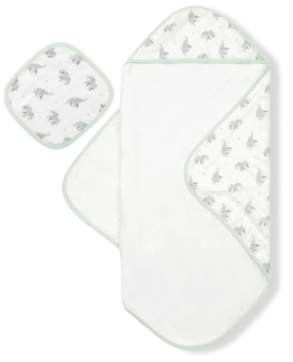 Bamboo Little Hooded Baby Towel & Washcloth Set - Elephant