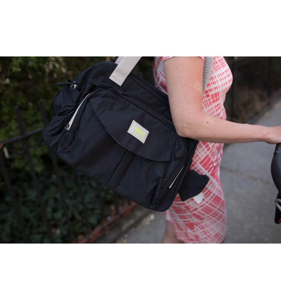 - Insulated storage pouch, pacifier case & large removable changing pad included
