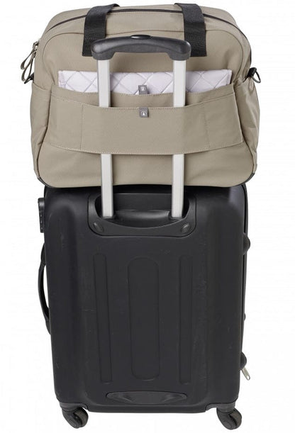 - Insulated storage pouch, pacifier case & large removable changing pad included