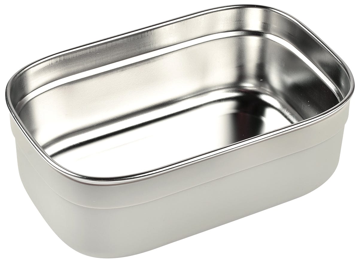 A stainless steel box with a protective cover and silicon lid, ideal for carrying small gourmets’ meals or snacks