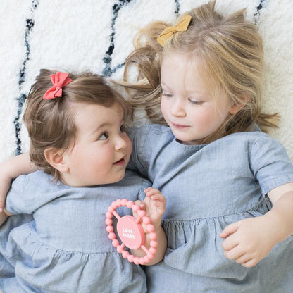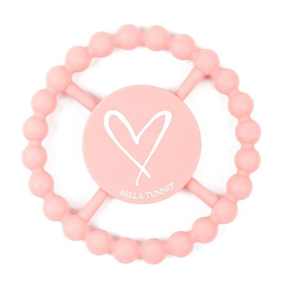 Our teething rings were designed with purpose! The rounded shape of the Happy Teether provides easy grip from any angle. The silicone material and beaded design give the right amount of resistance to sore gums and newly developed teeth.