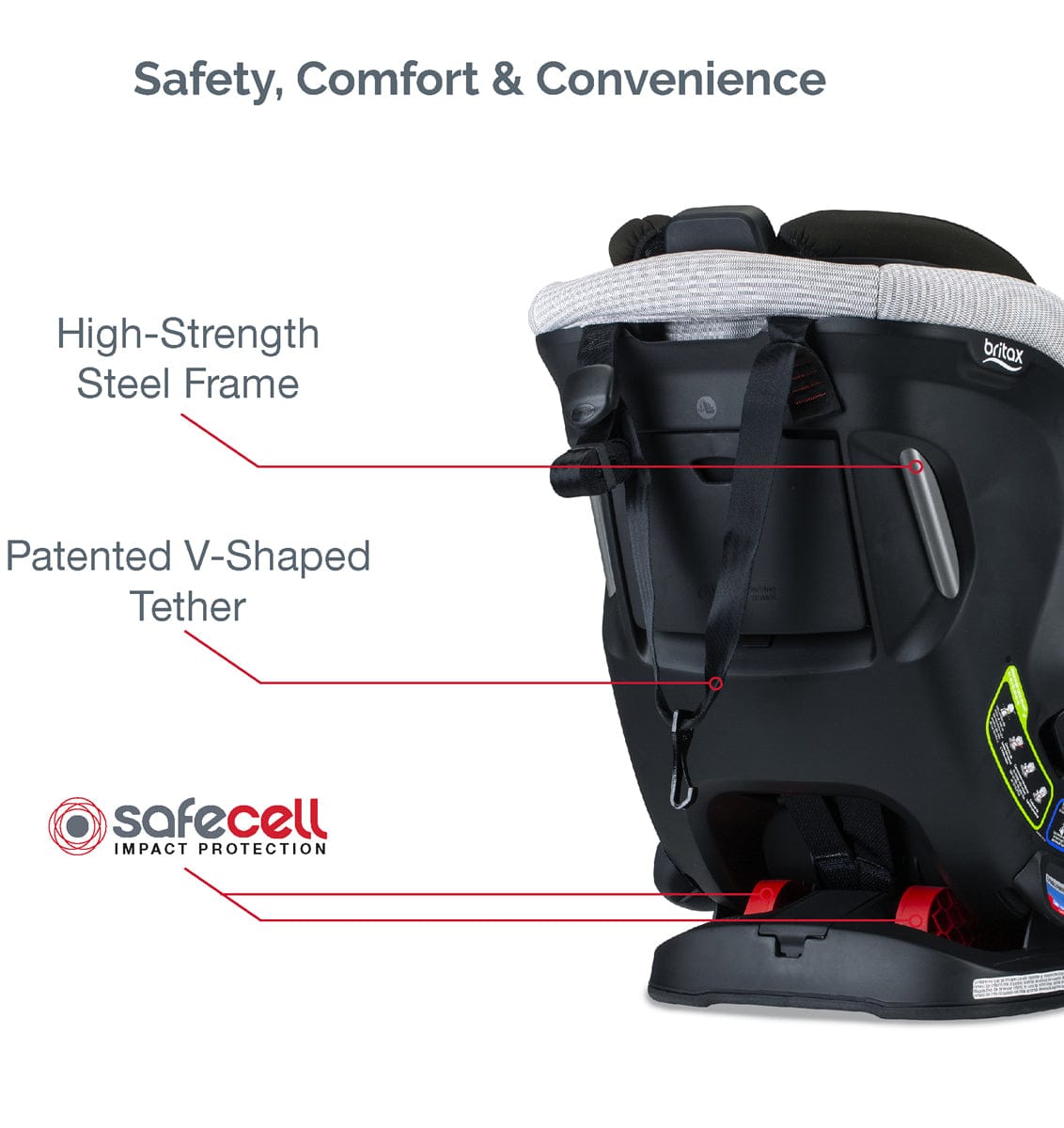 - SafeCell Technology acts as a crumple zone in the car seat base, absorbing crash energy to help keep it away from your child