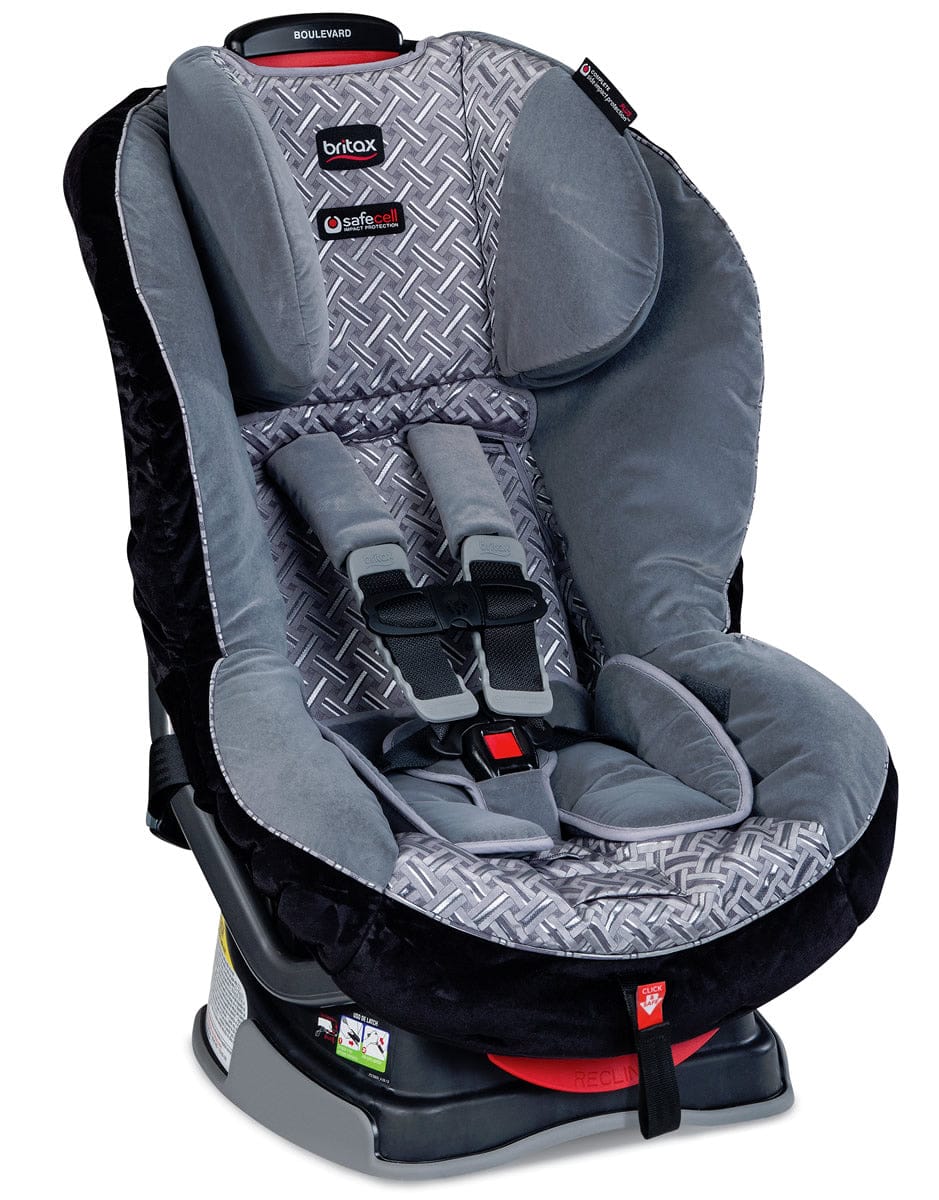 The Boulevard converts from a rear-facing position (for babies 5-40 lbs.) to a forward-facing position (for children 20-65 lbs.) and has been carefully designed to keep your little one safe and give you the confidence to simply click them in, give them a kiss and go.