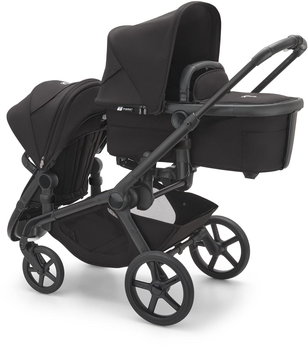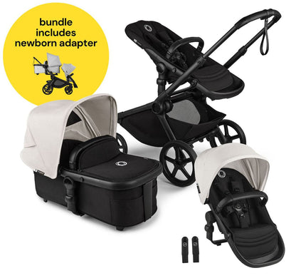 Bugaboo Kangaroo All-Position Newborn Double Stroller Bundle - Black / Midnight Black / Misty White