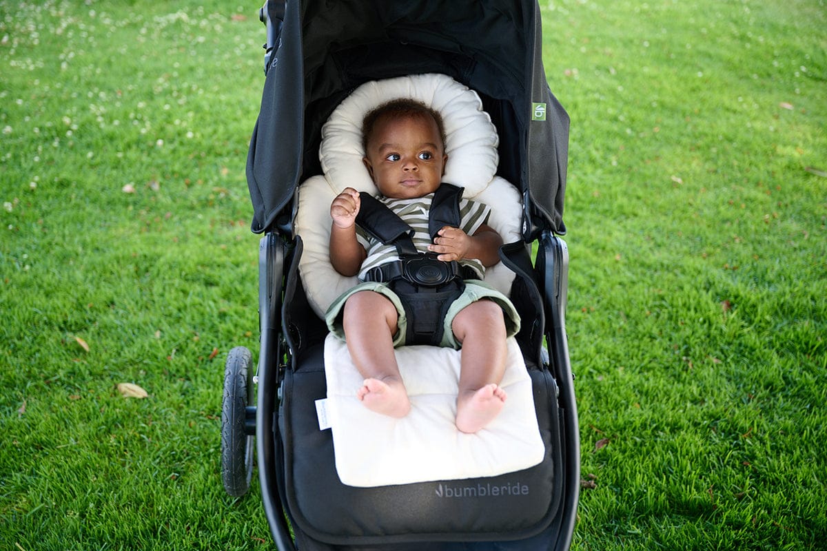 Our 100% organic cotton Infant Insert will keep your little traveler safe and secure starting at birth. This infant insert offers extra support for daily adventures and the organic cotton is perfect for babies with sensitive skin. This plush accessory easily attaches to all Bumbleride strollers and is machine washable on gentle cycle (air dry). The head support is adjustable for length and is suitable for most kids up to 18 months.