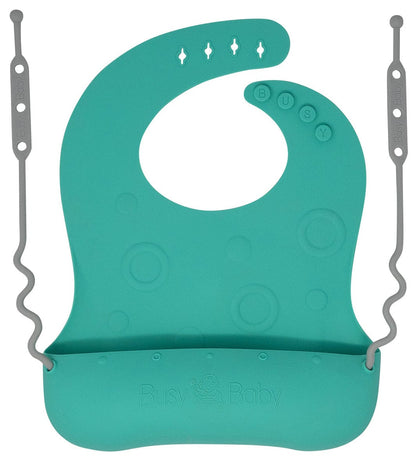Additionally, when you are done using the bib, it can be easily and securely rolled up for storage and transport. This bib is compatible with the Busy Baby line of products.