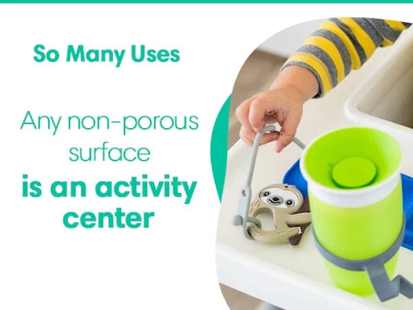This children’s placemat comes with two light grey toy straps to keep toys within your child’s reach and free from germs. No longer do you need to constantly pick up your child’s toys as they can now be safely attached to the Busy Baby Placemat. Using