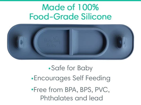 Made with food-grade silicone this placemat contains no Phthalates, BPA, BPS, or PVC. That means this product is safe for your baby to play on, eat off, and do everything else babies do while exploring their surroundings.