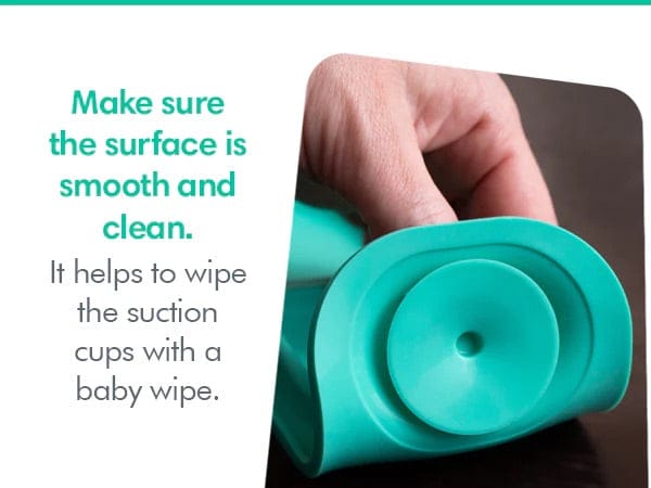 Perfect for small high chairs and travel trays, the Busy Baby Mini Mat is 1/3 the size of the original mat and contains a divided tray for food with a 3rd suction cup embedded on the bottom. It measures 11 inches X 3 inches.