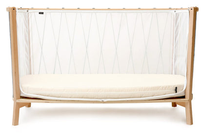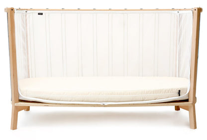Choose the cord that best suits your interior. Change the cord for your second child or even opt for a straight lacing instead of a crossover, KIMI adapts to your desires and tastes. You can also choose the mattress and top mattress (optional) that suits you best. An organic mattress with a firmer baby side and a softer child side and its organic top mattress included.