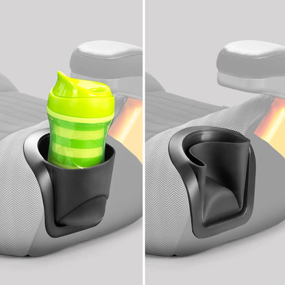 Two soft-sided CupFolders™ easily flex and fold out of the way to save space. For parent convenience, the cup holders are easy to remove and dishwasher-safe. All fabrics are also removable and machine-washable, including the pop-out arm rest covers.