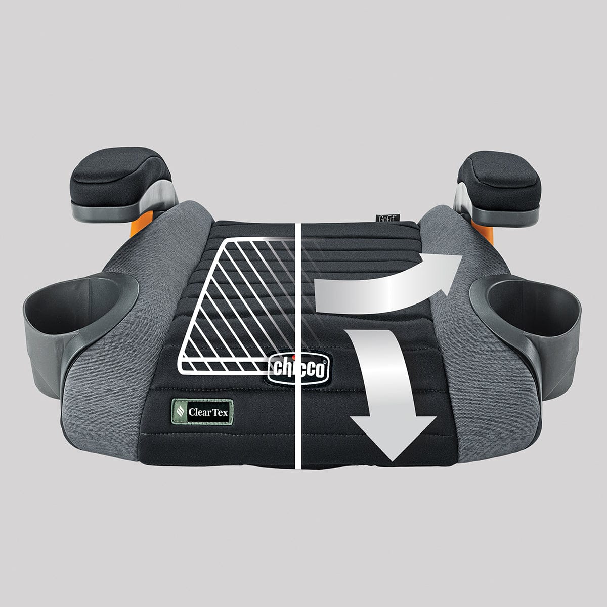 The Chicco GoFit® ClearTex® Backless Booster is designed for big kid comfort with a contoured ErgoBoost® seat and double foam padding that provide support in all the right places.