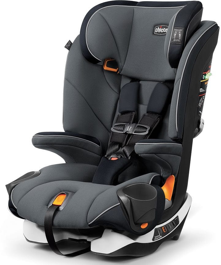 The Chicco MyFit® harness/belt-positioning car seat is designed to grow with children from toddler through big kid with easy transition from five-point harness to vehicle seat belt. Nine headrest positions accommodate growth throughout both modes and work together with a four-position recline to support proper posture. An extra-deep ErgoBoost® seat with dual-density foam padding is sloped and contoured for superior comfort.