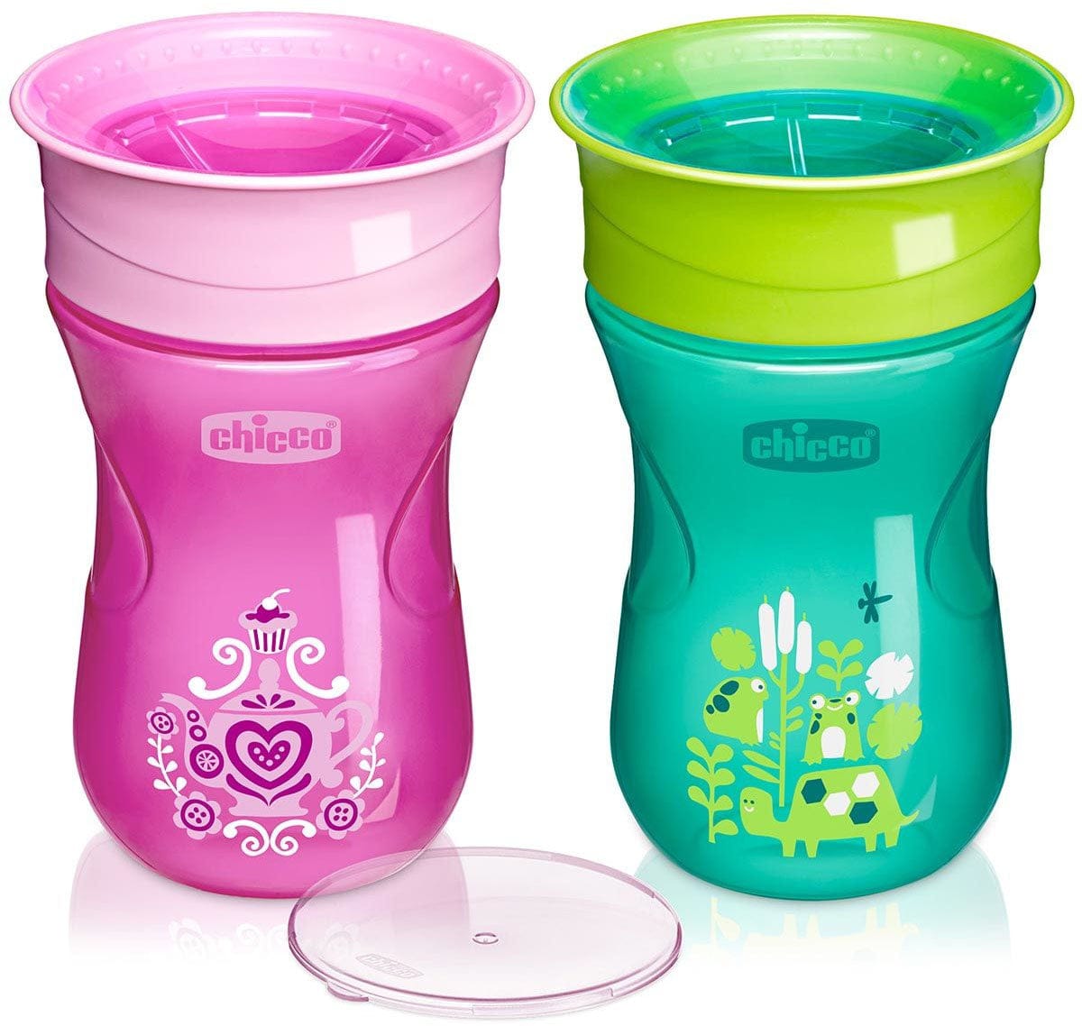 Chicco NaturalFit 9oz 360 Rim Set of 2 Trainer Cups - Pink/Teal