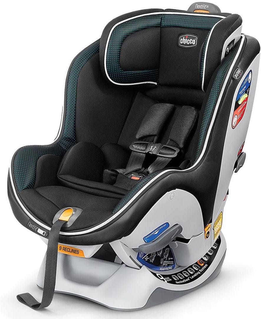 9 RECLINES & HEADREST POSITIONS Nine recline positions fit a wider range of vehicles, and nine headrest adjustments accommodate growing children from birth through preschool. RIDERIGHT BUBBLE LEVELSDual RideRight bubble level-indicators verify seat angle in both rear-facing and forward-facing modes. SUPERCINCH & LOCKSURESuperCinch LATCH tightener with force-multiplying technology helps achieve a tight and secure fit. LockSure belt-tightening system helps achieve a secure installation with vehicle seat belt. REMOVABLE SEAT PADZip & Wash seat pad easily zips out from shell for machine washing. Set the standard for automotive elegance with the mindfully designed LUXE? collection from Chicco?. Showcasing a perforated black leatherette layered over a hint of color, the sheen of a classic bright silver zipper, and all embodied in an exceptionally soft jet black knit, the LUXE? collection delivers with every luxurious detail that you'd expect from Chicco?. The Jade? fashion features emerald green. The NextFit iX convertible car seat fits your vehicle and fits your child with proven SuperCinch LATCH functionality and a new LockSure? vehicle belt-tightening system, plus easy-to-use adjustability designed to comfortably accommodate growing children from 5 to 65 pounds. NextFit iX Zip LUXE also features a zip-off seat pad for easy cleaning and premium fabrics like buttery-soft knit and color-punched leatherette that add comfort and offer a chic, luxurious aesthetic to complement automotive interiors. NextFit iX features a ReclineSure leveling system and RideRight bubble level-indicators to help achieve and verify proper angle in the vehicle seat. With nine recline positions, ReclineSure is designed to accommodate a wider range of vehicles in both rear-facing and forward-facing modes. For installation with LATCH, premium connectors and a SuperCinch force-multiplying tightener help achieve a secure fit with a fraction of the effort. (When it?s time to switch from rear-facing to forward-facing, the LATCH strap passes easily through the built-in slide path for proper re-positioning.) For installation with the vehicle seatbelt, clear belt routing and LockSure? lock-offs make it easy to position, tighten and lock the belt into place. NextFit iX is engineered to last from newborn through preschool with built-in ?fit-ability? for every stage, including a removable newborn positioner and smooth one-hand headrest adjustment with nine positions. As the headrest is raised, the harness shoulder strap position also raises and widens to accommodate growing children without re-threading. The 5-point harness features an easy-pull, force-multiplying tightener and removable, machine-washable shoulder pads. For easier in/out, NextFit iX Zip is also equipped with a padded ComfortFlex harness management system that holds both sides of the waist belt out of the way until the child is ready to be buckled. NextFit iX has a steel-reinforced frame and is lined with EPS energy-absorbing foam for superior side-impact protection. NextFit iX is designed for use from 5-40 lbs in Rear-Facing mode, and from 22-65 lbs in Forward-Facing mode. This product conforms to Federal Motor Vehicle Safety Standard 213 and is FAA approved for use on aircraft. ReclineSure 9-position leveling system for an accurate fit in a wider range of vehicles Dual RideRight bubble level-indicators verify seat angle in both rear-facing and forward-facing modes Premium connectors and a SuperCinch tightener help achieve a secure installation with LATCH New! LockSure? belt-tightening system helps achieve a secure installation with vehicle seat belt New! 9-position easy-adjust headrest and no-rethread harness accommodate growing children New! Easy-pull, force-multiplying harness tightener for a snug and secure child fit with less effort Zip & Wash seat pad easily zips out from shell for machine washing Premium fabrics offer a chic, luxurious aesthetic to complement automotive interiors Padded ComfortFlex harness system keeps both sides of waist belt out of the way for easy in/out! Steel-reinforced frame with EPS energy-absorbing foam is side-impact tested for superior protection Specifications: Weight: 26.5 lbs Dimensions: 29.2 H x 19 W x 21 D Usage: From 5-40 lbs in rear-facing mode, and from 22-65 lbs in forward-facing mode.