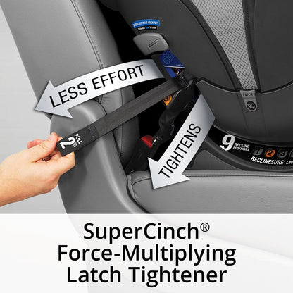 - Best in class, 9-position ReclineSure™ leveling system for improved vehicle fit and child comfort