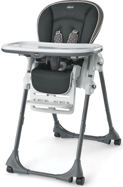 Designed in Italy, the Polly® single pad Highchair from Chicco features an ultra-slim 8" fold and easily adjusts to grow with your child! Its 3-position reclining seat and 6 height adjustments help accommodate feeding for smaller babies, and the one-hand removable tray, adjustable footrest and fold-away armrests make it easy for older children to scooch right up to the table with the rest of the family!