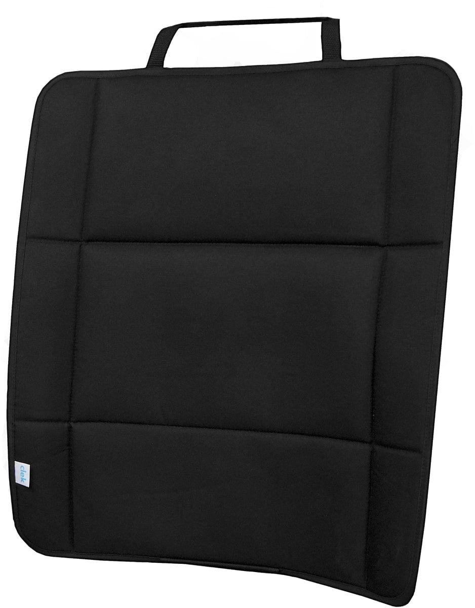 The Clek kick-thingy is a protector of your vehicle’s seat back. This lightweight padded shield is easy to install and fits just about every vehicle. No more scuff marks from those kicking feet. The shield can be used to protect the backside of the front seat or the front side of the back seat.